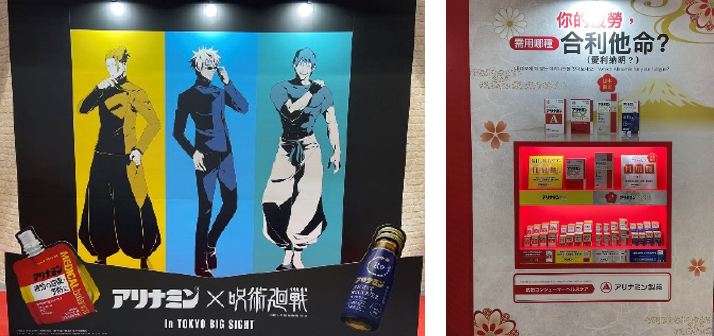 大好きなアニメ「呪術廻戦」の大きなパネルがあったので、つい立ち止まって、撮影してしまいました。こちらは、アリナミン製薬のブースです。