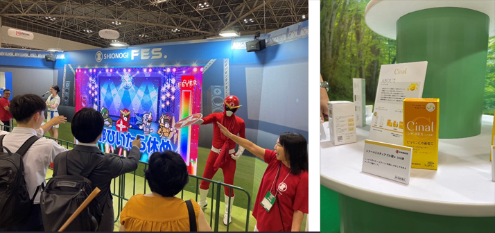 科学戦隊風のスーパーヒーローによる音楽フェスで盛り上がっていたのが、 145年の歴史を持つ、シオノギヘルスケアのブースです。