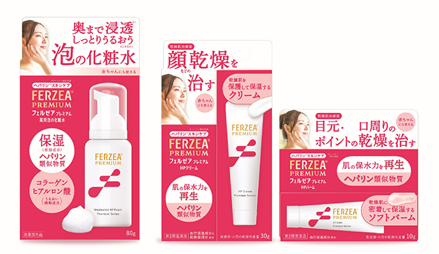 医薬部外品の『フェルゼアプレミアム 薬用泡の化粧水』、医薬品の『フェルゼアプレミアム HPクリーム』『フェルゼアプレミアム HPバーム』の全3品をラインアップしています。