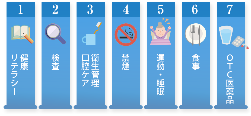私たちの健やかな毎日を支えるセルフケアは、7本の柱であらわせます。