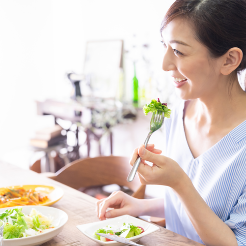 朝食は必ずとり、1日最低1食は家族や友人などと2人以上で楽しく、30分以上かけてとることを心がけましょう。