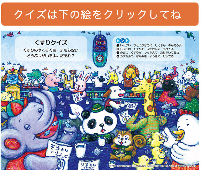 くすりは正しく使うととても助かるもの。子どもにも分かりやすい絵本なども役立ちます。ページ下の「くすりクイズ」にもぜひお子さまと一緒に挑戦してみてくださいね!