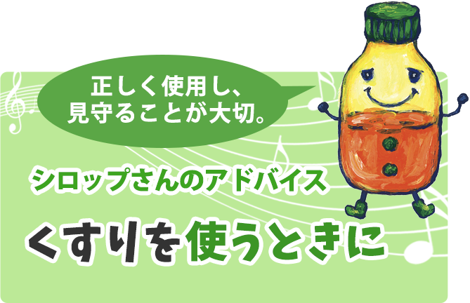 ここではくすりを飲む前に知っておきたい注意したいこと、困ったときはどうしたら良いか、また、くすりを飲むのが苦手なお子さまにも楽しく使用して頂けるポイントを、リノちゃんが出会ったくすりカルテットのみんなと共に解説します。